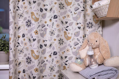 Het baby- en kindergordijn Mees is werkelijk een prachtstuk met zijn vrolijke en eigentijdse Scandinavische motieven. De vogeltjes, elk 10 cm groot, en de bloemetjes die variëren van 4 tot 6 cm zorgen voor een speelse en levendige uitstraling. Gemaakt van dicht geweven katoen, kan dit gordijn worden gevoerd voor extra isolatie en verduistering, wat een wereld van verschil maakt, vooral tijdens rustige nachten. Met dit gordijn tover je de kamer van je kleintje om tot een gezellige en knusse plek 💤