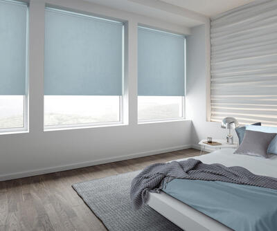 Verduisterende rolgordijnen voor de kinderkamer verkrijgbaar in 20 frisse uni kleuren.