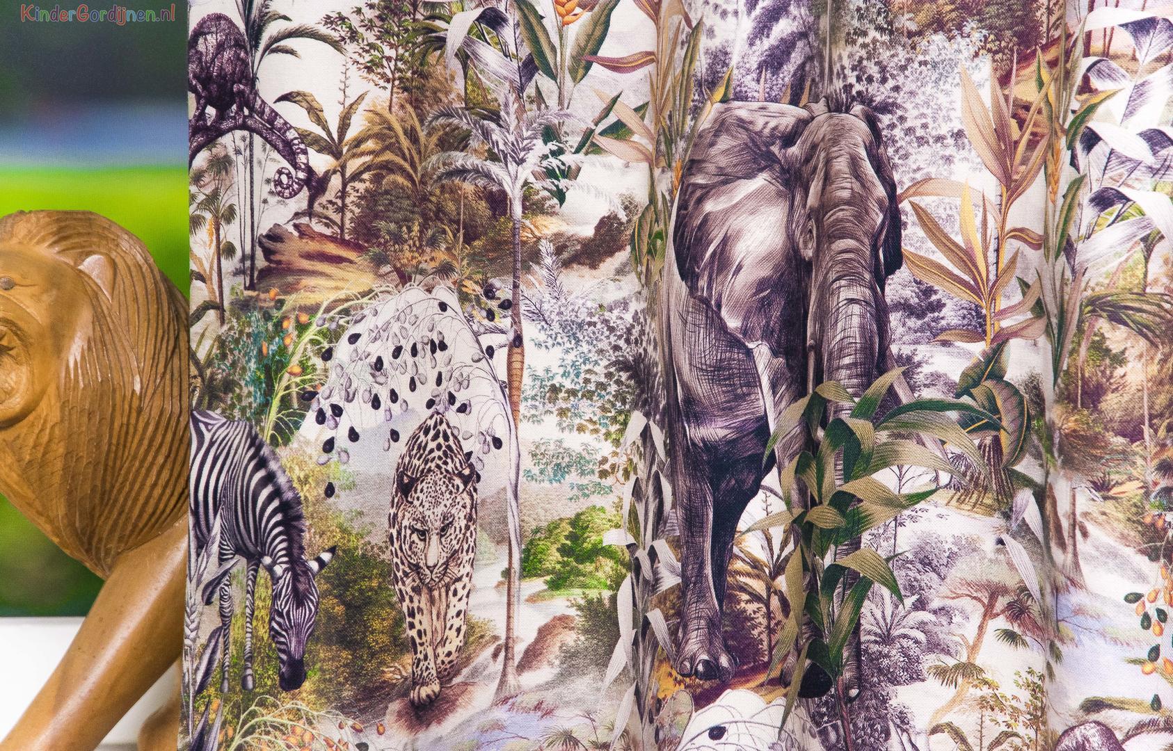 geconfectioneerd zodat het jungle en safari patroon van 104 cm mooi doorloopt.