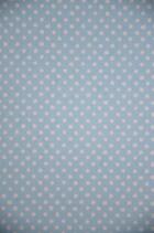Populair kindergordijn met een eenvoudig stippenmotief tegen een roze of blauwe achtergrond. De stip heeft een doorsnede van 5mm. De katoenen gordijnstof voelt heerlijk zacht aan en kan door KinderGordijnen.nl gevoerd worden tot verduisterend gordijn.