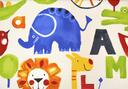 ✔De eerste kleuruitvoering combineert diepblauw, frisgroen, warm geel en oranje op een zachte roomwitte achtergrond met een licht geweven textuur, waardoor de dieren helder afsteken maar het geheel toch rustig blijft ogen.