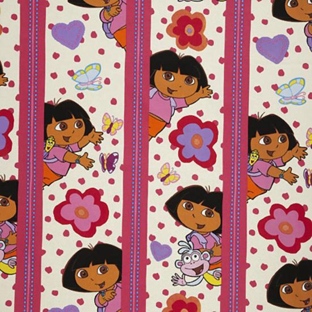 Op dit gordijn worden vrolijke plaatjes van Dora afgewisseld met kleurrijke strepen in de lengterichting. Dit gordijn past precies in de kinderkamer van avontuurlijke meisjes!