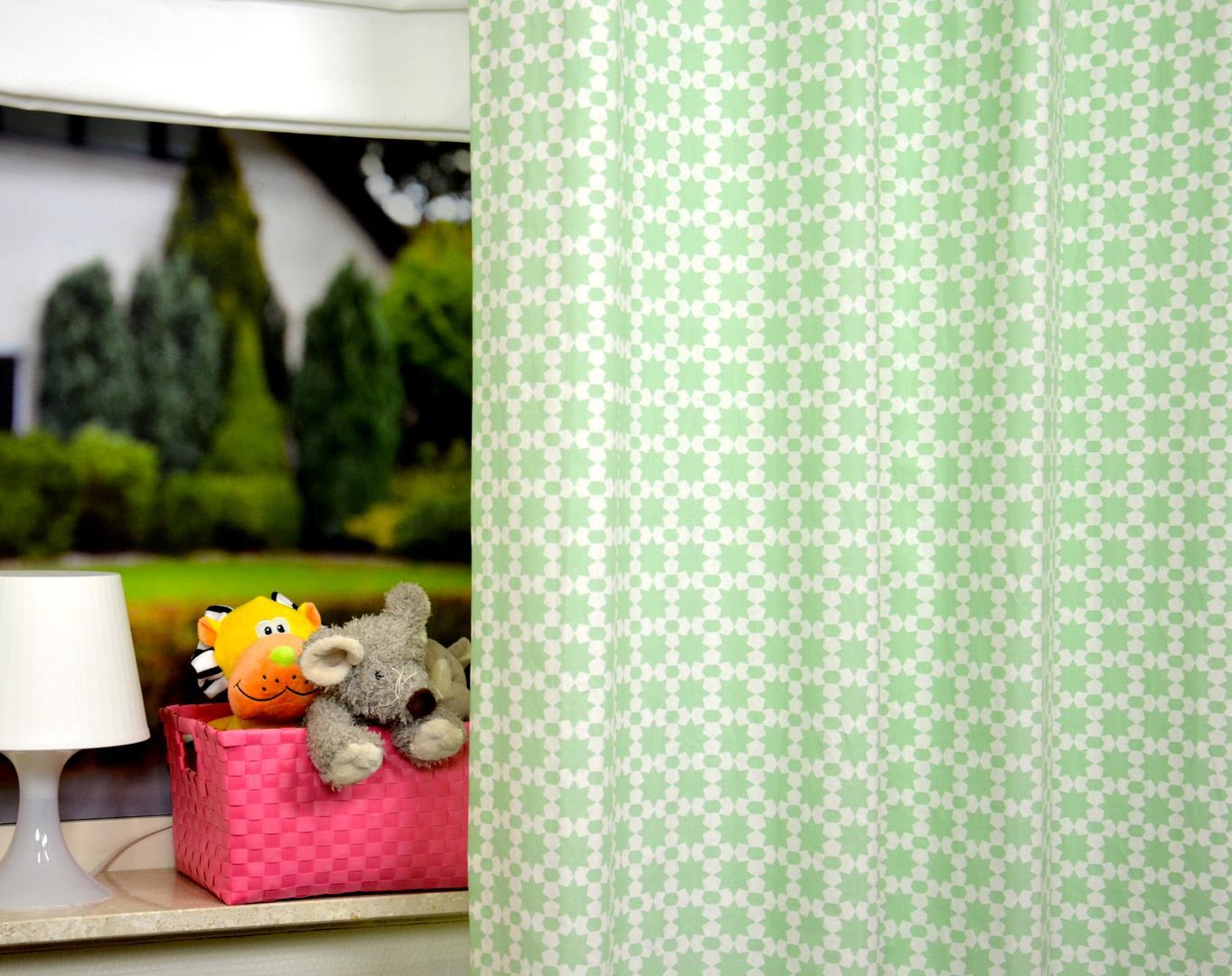 Ontdek het bijzondere kindergordijn Petto, een prachtige toevoeging aan de kinderkamer! Het warmwitte gordijn met zachtgroene achtpuntige sterren en hexagon gevormde blokjes creëert een speelse en rustgevende sfeer. De soepele stof plooit elegant, en je hebt de mogelijkheid om het te combineren met een verduisterende en isolerende voering voor extra comfort. Bestel een knipstaaltje om de stof zelf te ervaren - de kosten kunnen zelfs in mindering worden gebracht op je uiteindelijke gordijnbestelling. Met dezelfde dag verzonden knipstalen en altijd beschikbaar voor vragen, bieden we jou een zorgeloze winkelervaring. Maak de kinderkamer compleet met het Petto kindergordijn!