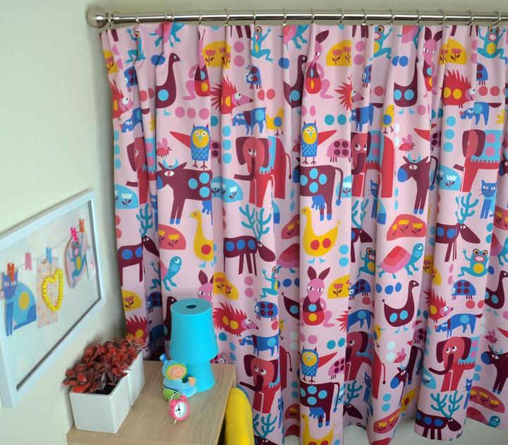 Kleurrijk kindergordijn met prachtige dierenillustraties. De gordijnstof is verkrijgbaar in drie uitvoeringen en uitermate geschikt voor scholen en kinderdagverblijven. De polyester gordijnstof is niet alleen verduisterend, maar ook brandvertragend en anti-bacterieel volgens de DIN 4102 B1 certificering.