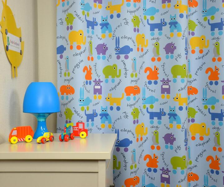 Kleurrijk kindergordijn met prachtige dierenillustraties. Door haar bijzondere eigenschappen is het Symbolic Animals kindergordijn uitermate geschikt voor scholen en kinderdagverblijven. De polyester gordijnstof is niet alleen verduisterend, maar ook brandvertragend volgens de DIN 4102 B1 certificering.
