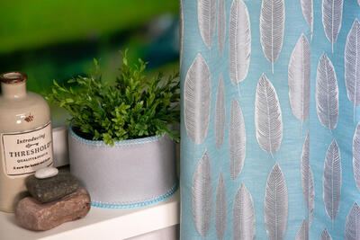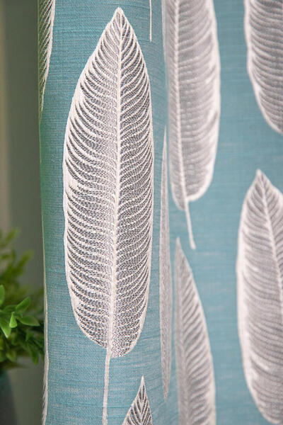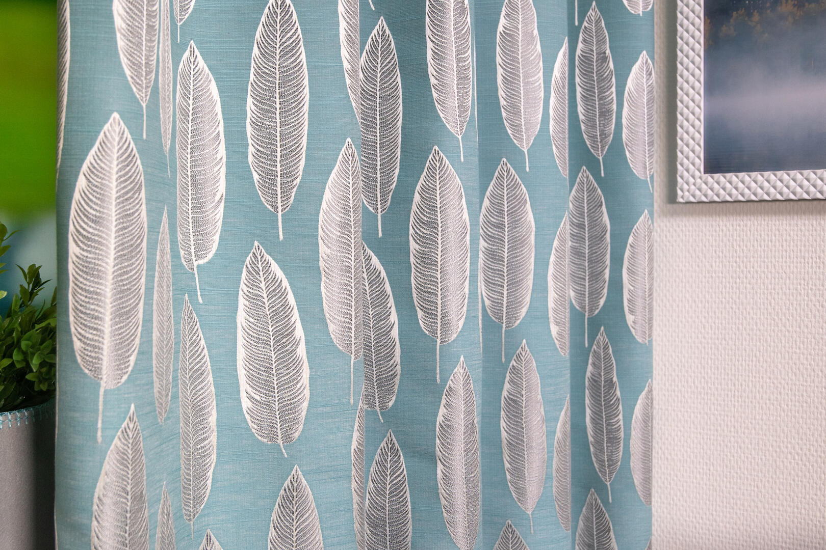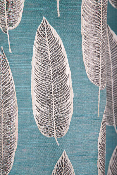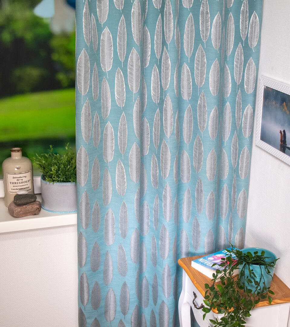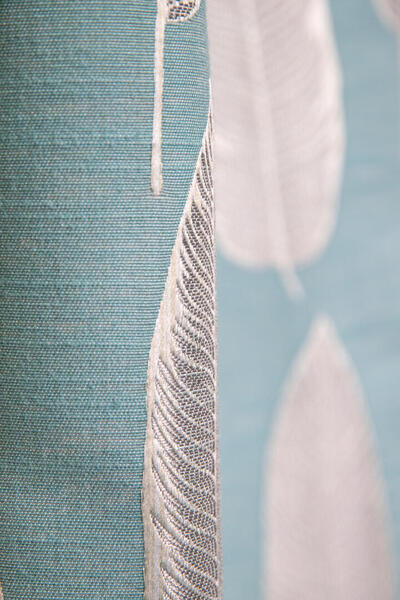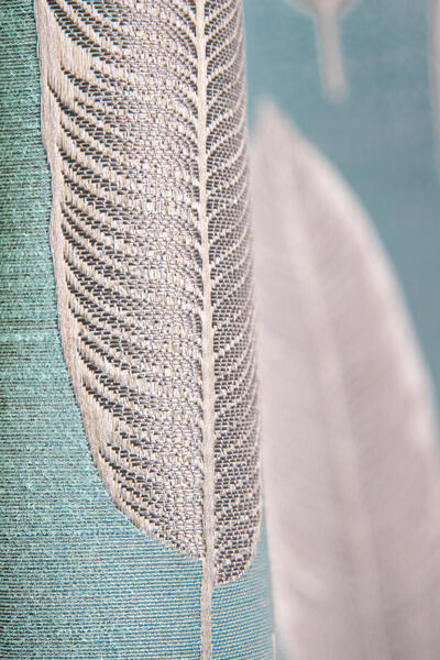Wat dit gordijn echt uniek maakt, is het verfijnde motief. Is het een veertje? Of toch een bladmotief? Het lijkt net alsof deze delicate ontwerpen op de stof liggen, wat zorgt voor een bijzonder effect. Dit geeft het gordijn een subtiele en artistieke uitstraling.