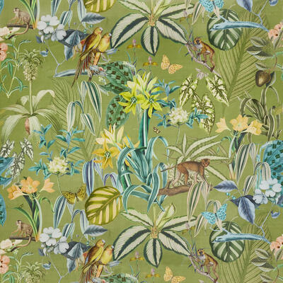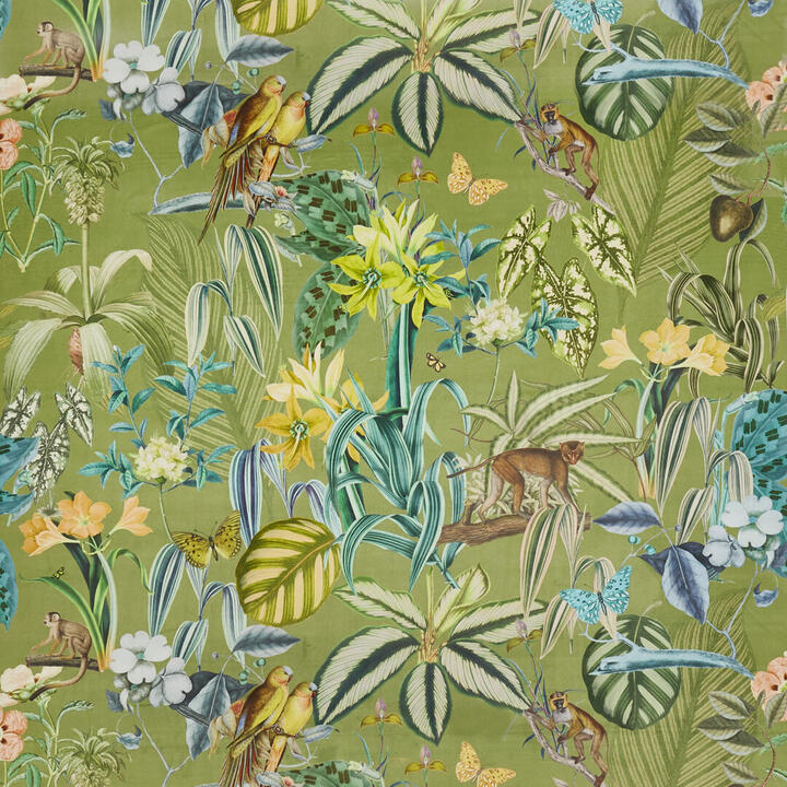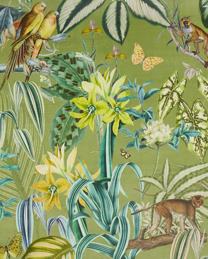 Hier 30 cm groot en de slingeraapjes, die mag je zelf opzoeken. De digitale print is op de voorzijde van de velourse stof gedrukt. Voor verduistering of extra kleurbehoud kan je het gordijn laten voeren. Welkom in het oerwoud, als je durft!