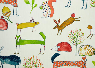 Fraai gordijn voor de meisjes- en jongensslaapkamer. Kunstzinnig getekende bosdieren komen gezellig bij je ‘buurten’ en maken de kamer direct gezellig & sfeervol. De afbeeldingen zijn gedrukt op dicht geweven, matte katoen. De ondergrondkleur is warm wit en de stof leverbaar in 3 verschillende kleuren. Houd je van schattig, maar niet al te zoetsappig, dan is dit gordijn perfect! Voor extra verduistering even voeren aanvinken in het bestelproces.