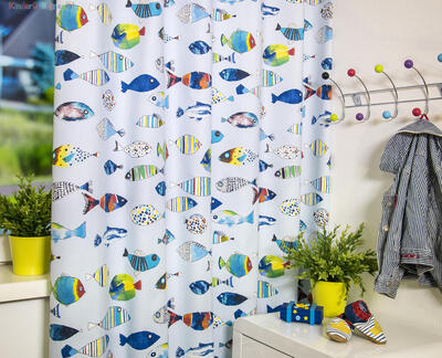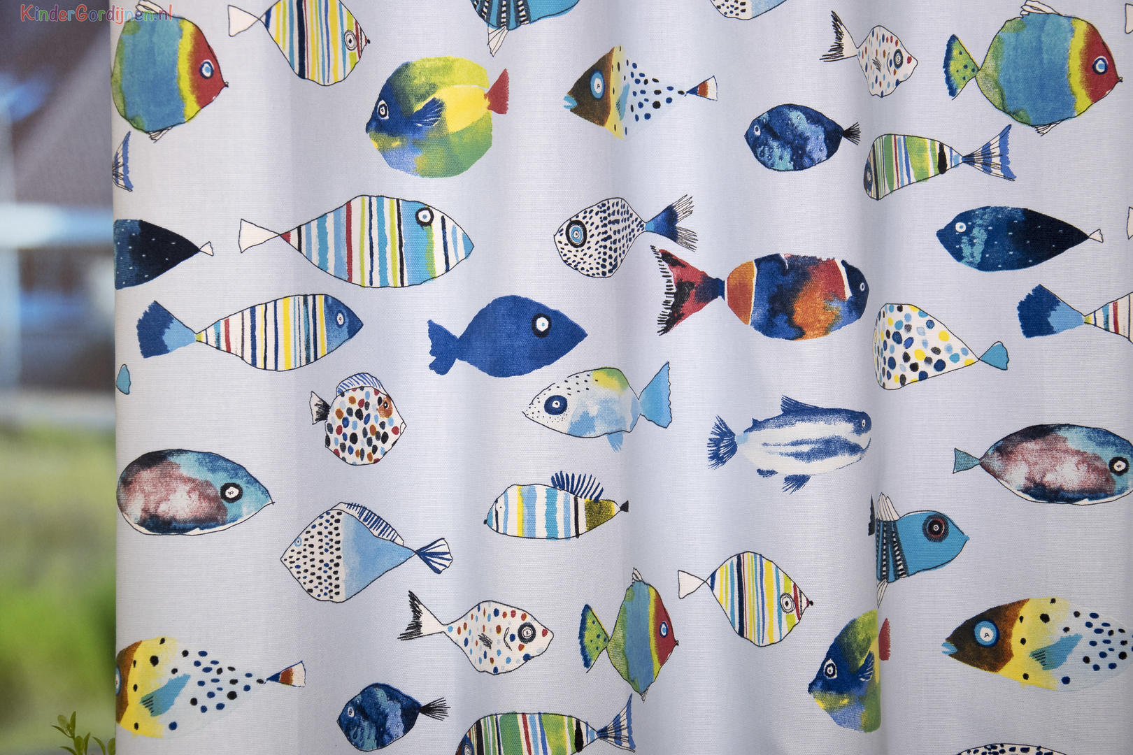 Deze gordijnstof met de naam Fishing is gemaakt van de beste materialen waardoor het gordijn mooi in de plooi valt.
