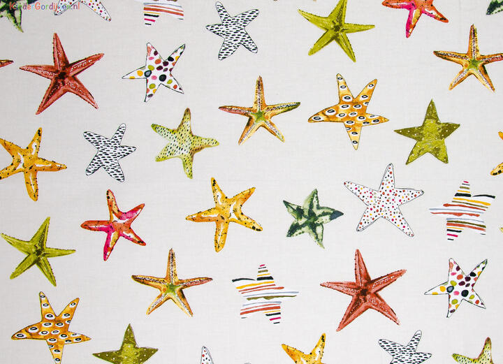 Deze gordijnstof met de naam Zeester is gemaakt van de beste materialen waardoor het gordijn mooi in de plooi valt.