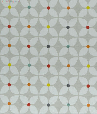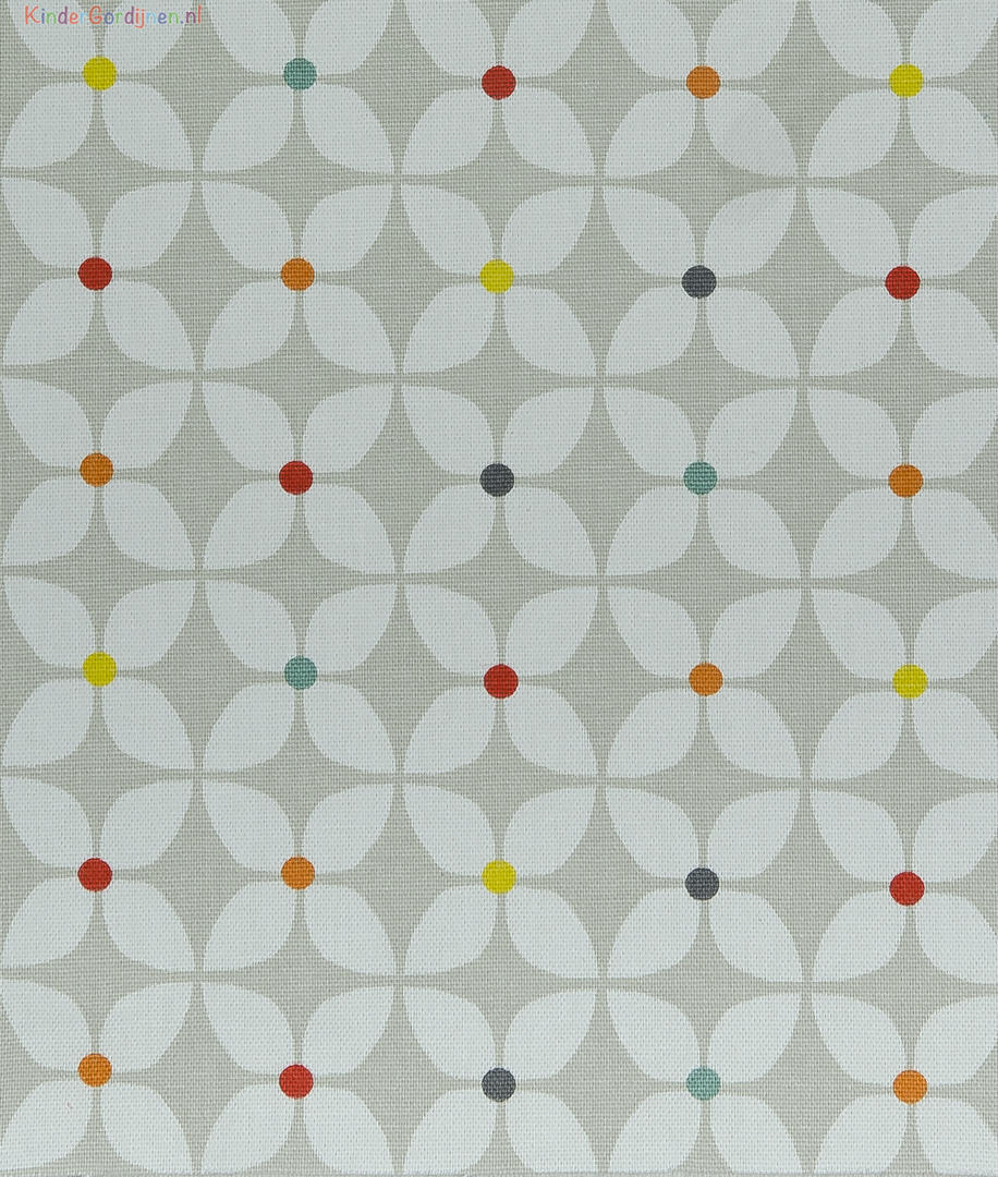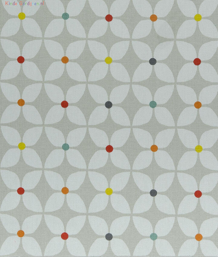 Het Zapp-kindergordijn is gemaakt van hoogwaardige stof met een tijdloos Scandinavisch patroon. Op de opvallende stof zijn kleine grafische bloemen te zien, met witte blaadjes met kroontjes in verschillende passende kleuren. Door het regelmatig herhalende patroon krijgt de stof een moderne en speelse uitstraling die perfect is voor de kamer van je kind.