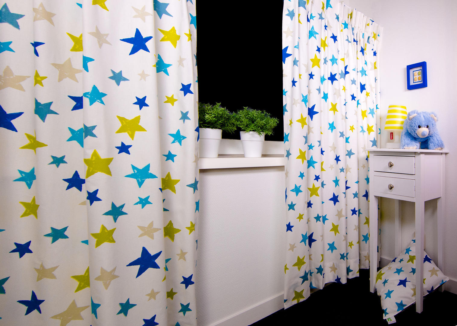 Deze sterren gordijnen zijn ideaal omdat ze kleurrijk én tijdloos zijn. Ook leverbaar in 5 verschillende kleurpaletten, waardoor zij voor zowel jongens- als meisjeskamer geschikt zijn. Jong & oud zou toch graag eens onder een sterrenhemel slapen? Daarom is het zo leuk om dit thema uit te breiden. De gordijnstof kan ook als vouwgordijn gemaakt worden en naar wens gevoerd. Welterusten sterretjes!