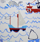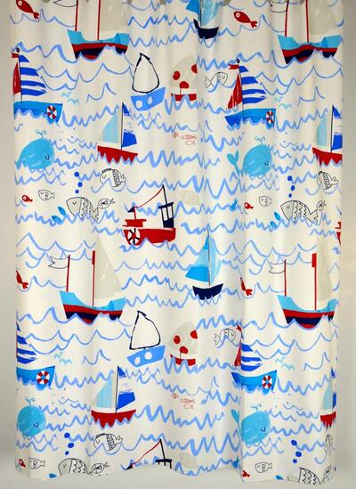 Een fraai maritiem gordijn, leverbaar in 2 kleuren. De lekker robuust geweven stof is warm wit van kleur en aan de voorzijde bedrukt met grafisch vormgegeven bootjes en visjes. De blauwe variant heeft diep steenrood als accentkleur. De aqua blauwe variant is lichter en fris van kleur en heeft lindegroen als accentkleur. De bootjes zijn +/- 15 cm groot. Het is natuurlijk super leuk om dit thema met accessoires uit te breiden en evt. een accent blauwe of groene wand. De kwalitatief hoogwaardige stof valt soepel en kan desgewenst nog gevoerd worden. Zie jij de nieuwe kamer al voor je?
