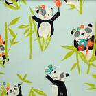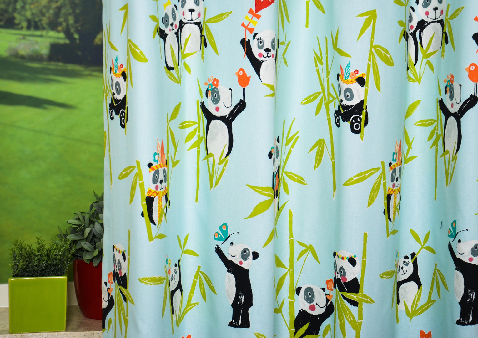AhhhÂ… om te smelten, wat een schattige reuzenpanda’s! In het wild leven pandaberen alleen in Azië. China om precies te zijn en daar eten zij de hele dag door verse bamboeblaadjes. Ze hebben een dikke vacht omdat de winter in de Chinese bergen erg koud is. Gelukkig heb jij vast een héérlijk warme slaapkamer voor deze berenfamilie. De panda’s zijn zo’n 14 cm groot. De gordijnstof is leverbaar in 3 frisse kleuren en kan naar wens gevoerd worden.