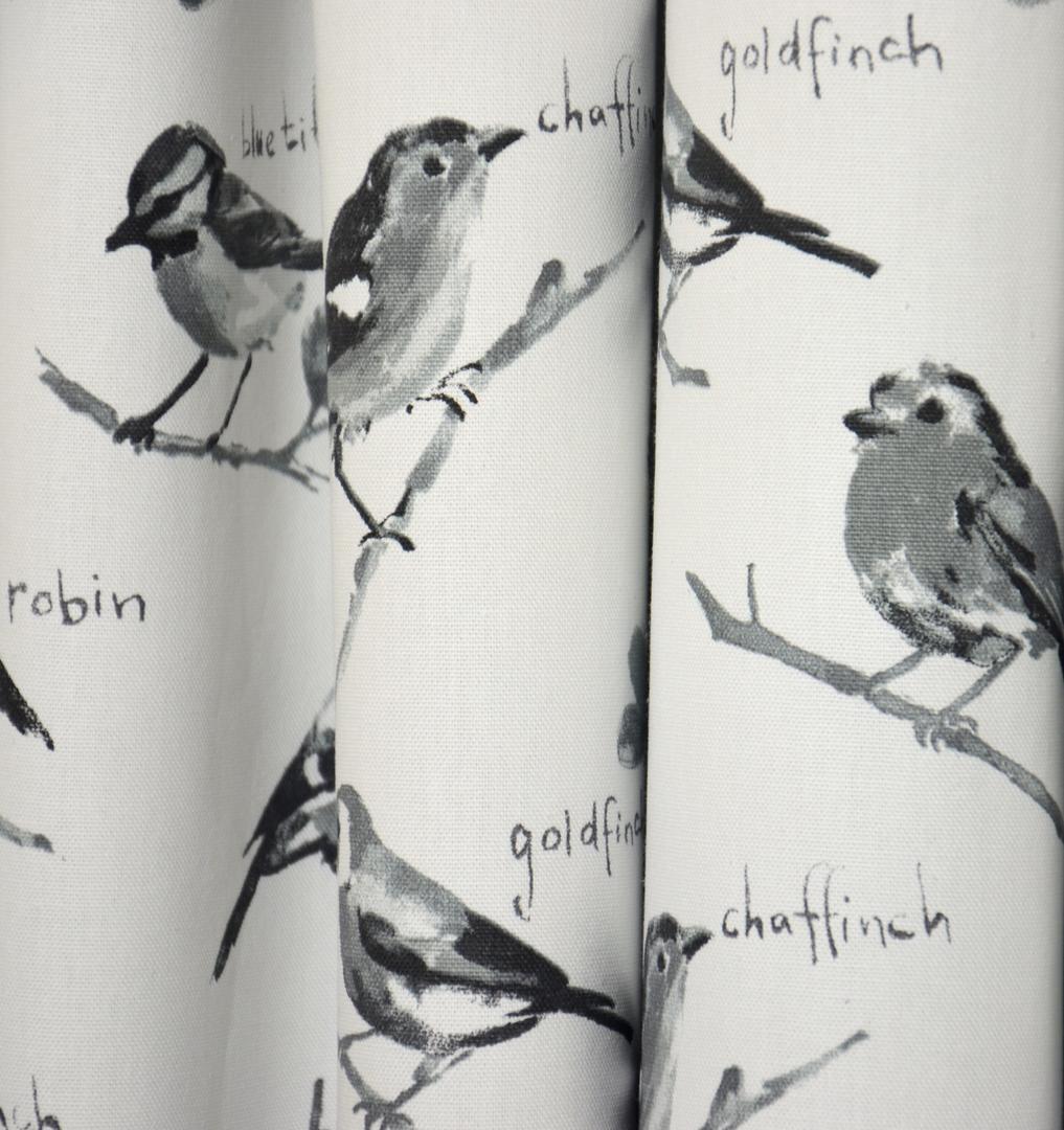Zangvogeltjes op een gordijn voor je raam, hoe vrolijk is dat? Verschillende soorten zingen hun mooiste lied en jij mag kiezen: de roomwitte ondergrond of de sportieve linnenkleur? Ook de zwart-witte variant is aantrekkelijk doordat de vorm fraai uitkomt. Het effect is dan tijdloos, zoals bij zwart-wit fotografie. De afbeeldingen zijn gedrukt op matte, vlotte katoen en zo’n 12 x 8 cm groot. Desgewenst verduisterend te voeren.