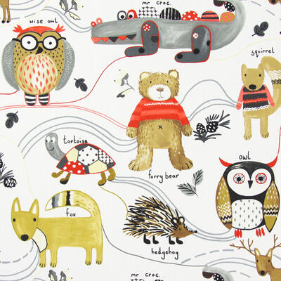 Gordijnen van een gewéldige merk! Vernieuwend en trendsettend, dat is waar dit merk voor staat. Saai en braaf kan altíjd nog. Wanneer je voor dit dierengordijn kiest, weet je dat sfeer en kleur gegarandeerd zijn! Ideaal wanneer je wanden met spack of structuur op de kinderkamer hebt, en behangen geen optie is. Op deze dierengordijnen is zoveel te zien. Door het royale patroon kan het gordijn uitstekend tot de grond gemaakt worden. De vos en de uil zijn b.v. 18 cm groot en gedrukt op matte, ietwat geruwde stof. Dat geeft een vlotte uitstraling. Leverbaar in 5 verschillende kleuren, dus jouw voorkeur zit er vast & zeker bij. Mogen deze bosdieren bij jou komen wonen?