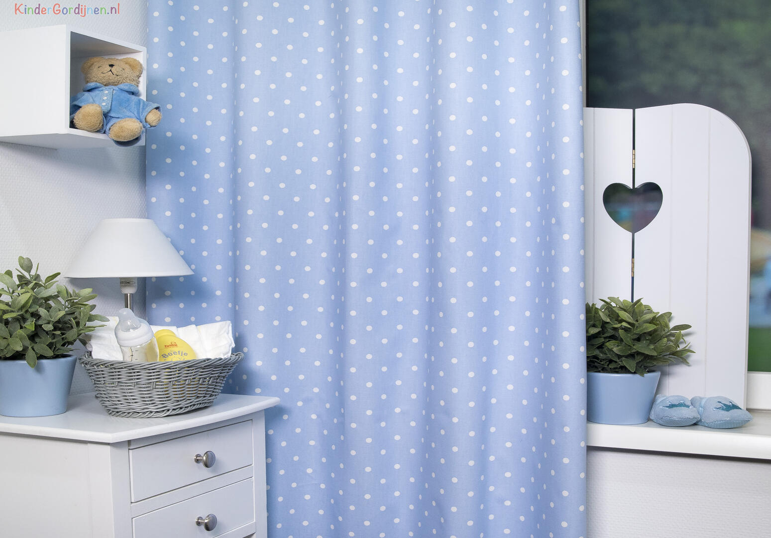 Een STIP blijft altijd HIP! Een stippelgordijn kan zowel voor de kinder- als babykamer. Ideaal zo’n rustig patroontje wat uitstekend met andere vormen & thema’s combineert. Je kan met behang of beddengoed alle kanten op. De stip is 1 cm in doorsnede en het gordijn leverbaar in drie kleuren: stijlvol roze, tijdloos zand-grijs en fraai Scandinavisch blauw. Dit is op de voorzijde aangebracht, de achterzijde is neutraal wit. De matte stof is mooi dicht geweven, met een lichte structuur wat een vlotte uitstraling geeft. Overduidelijk een zichtbaar goede kwaliteit. Het gestipte gordijn kan verduisterend gevoerd worden, wanneer je graag donker slaapt. Voor welke kleur ga jij?