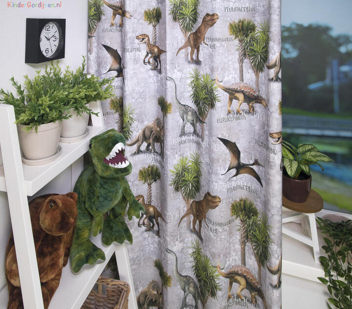 Deze gordijnstof met de naam RaptorRex is gemaakt van de beste materialen waardoor het gordijn mooi in de plooi valt.