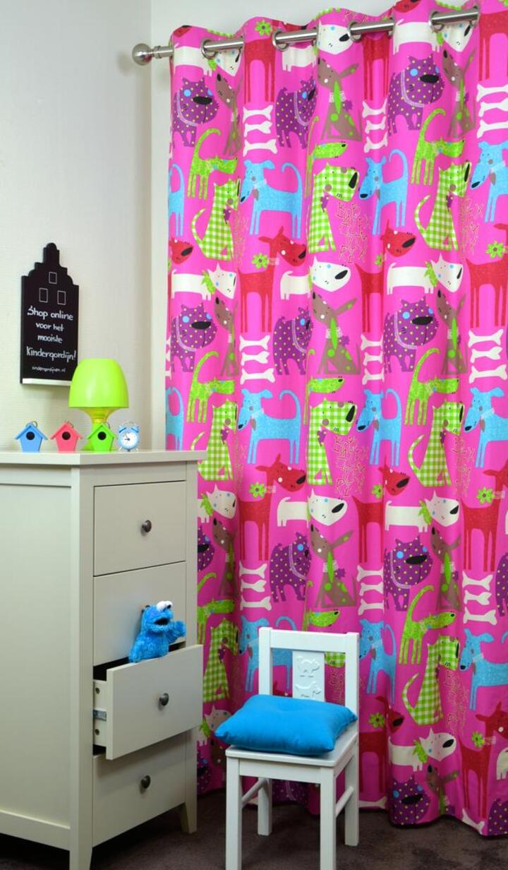 Spelen en slapen in de kinderkamer is een feest met deze lieve hondjes op de gordijnen. Met deze bonte beestenboel in de kinderkamer raakt uw (klein)kind niet snel uitgespeeld.
