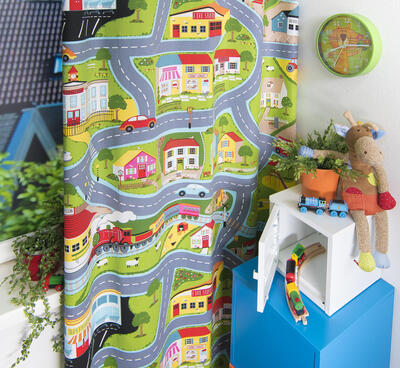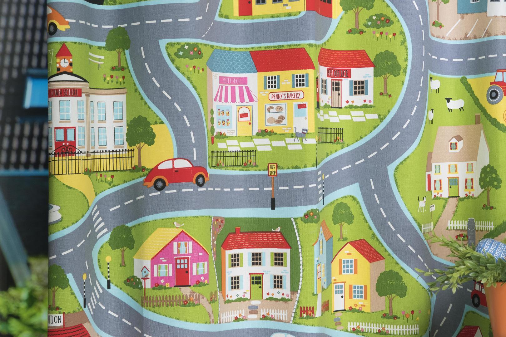Roadmap is een unieke gordijnstof met een wegenkaart met daarop huizen auto's en treinen. De stof is gemaakt van de beste materialen waardoor het gordijn mooi in de plooi valt. Het aantal te gebruiken banen gordijnstof van 140 cm breed wordt door ons vakkundig aan elkaar geconfectioneerd. Laat voor een aangename isolatie en extra verduistering de gordijnen voeren: een verschil van dag en nacht!