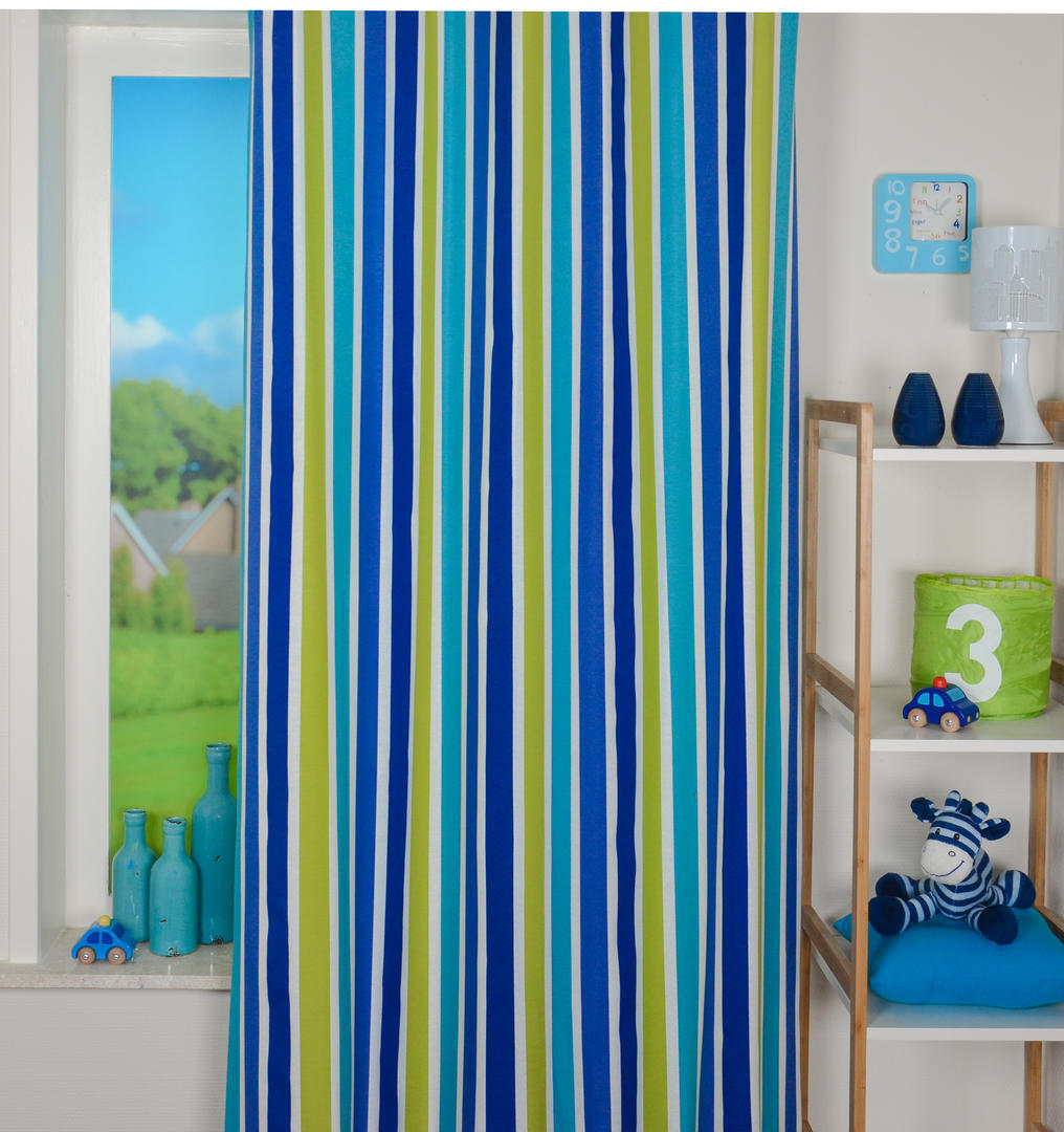 Strepen zijn STYLISH! Makkelijk te combineren met andere patronen en afbeeldingen. Ook geeft een streep een hoogte effect, waardoor de kamer wat ruimtelijker lijkt. Dit gordijn is leverbaar in 5 verschillende kleurcombinaties en allemaal voorradig! Snelle levering is daardoor gegarandeerd. Het patroon is gedrukt op licht geribde, matte stof, wat een vlotte uitstraling geeft. De strepen zijn 5 cm breed en voor kleurbehoud of een donker makend effect graag even voeren.