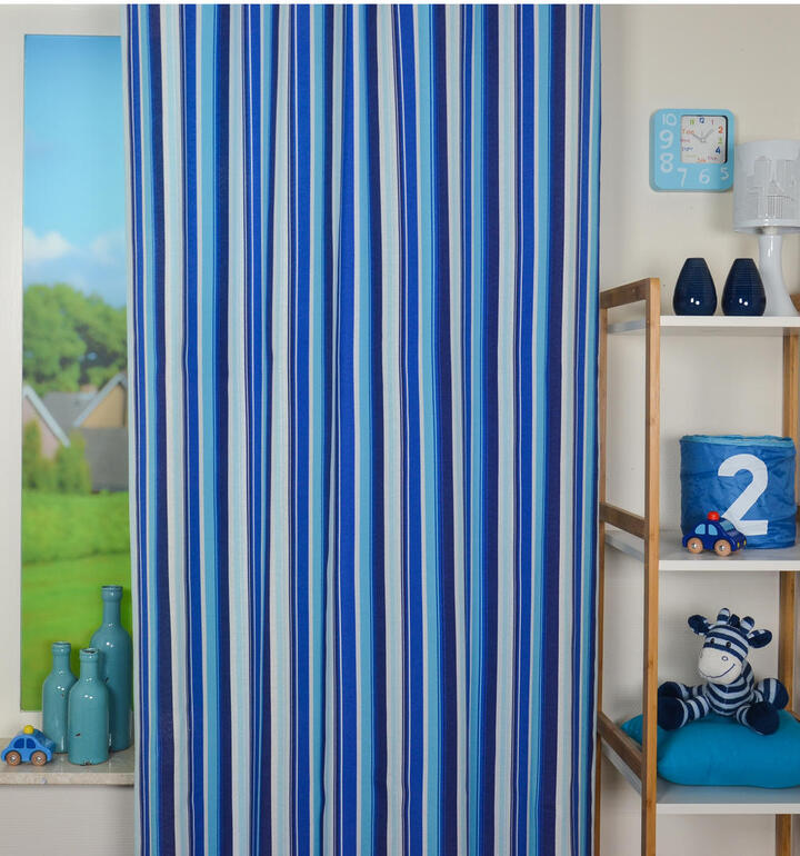 Strepen zijn STYLISH! Makkelijk te combineren met andere patronen en afbeeldingen. Ook geeft een streep een hoogte en/of breedte effect, waardoor de kamer wat ruimtelijker lijkt. Dit gordijn is leverbaar in 2 verschillende kleurcombinaties en allemaal voorradig! Snelle levering is daardoor gegarandeerd. Het patroon is gedrukt op licht geribde, matte stof, wat een vlotte uitstraling geeft en kan zowel horizontaal als verticaal worden toegepast. De strepen zijn wisselend van breedte. (max.5cm) voor kleurbehoud of een donker makend effect graag even voeren.