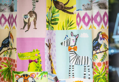 De Sabana is een kleurrijk kindergordijn met een prachtige print van vrolijke jungledieren. Spelen in de kinderkamer is wel heel gezellig met deze aandoenlijke leeuwen, zebra’s, giraffes, olifanten en neushoorns op de gordijnen. Het Tisafari gordijn is verkrijgbaar in drie warme kleurencombinaties.