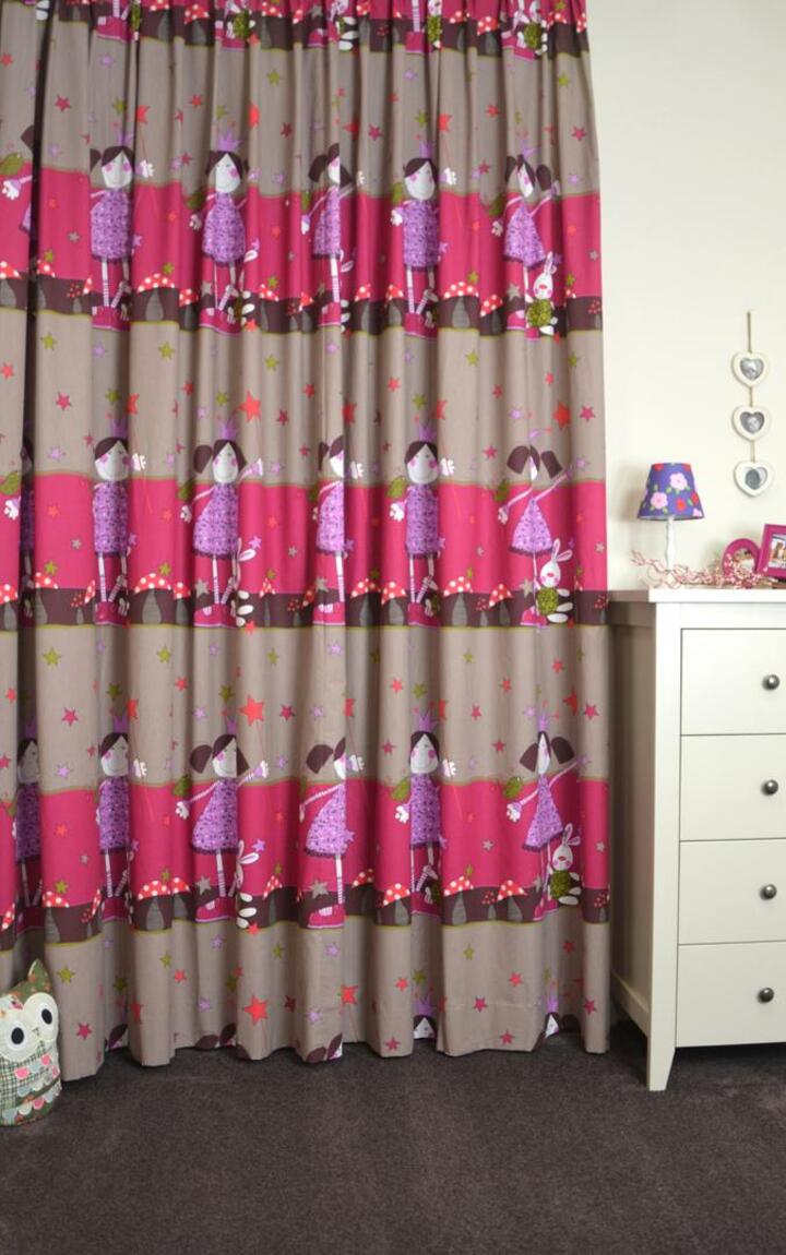 Van dit vrolijke prinsesje wordt ieder kind blij. Dit typische meidengordijn creëert een knusse sfeer in de kinderkamer van uw dochter. De katoenen gordijnstof is los te bestellen of wordt gratis verwerkt tot een kant-en-klaar gordijn.