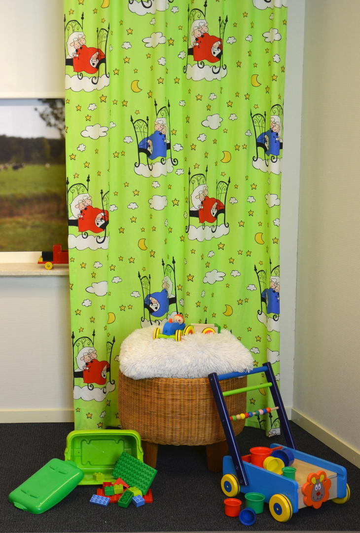 1,2,3,4,5...97, 98 ....ZzzZzzZzz Schaapjes tellen om in slaap te vallen, wie heeft niet ooit die tip gekregen. Met dit vrolijke groene gordijn met schaapjes onder rode of blauwe dekentjes, zwevend op de wolken door de sterrennacht hoeft uw kind zich geen moment te vervelen. Er valt genoeg te tellen, de sterren, de manen of de schaapjes zelf. Deze stof bestaat uit 100% katoen en kan naar wens ook verduisterend worden geleverd.