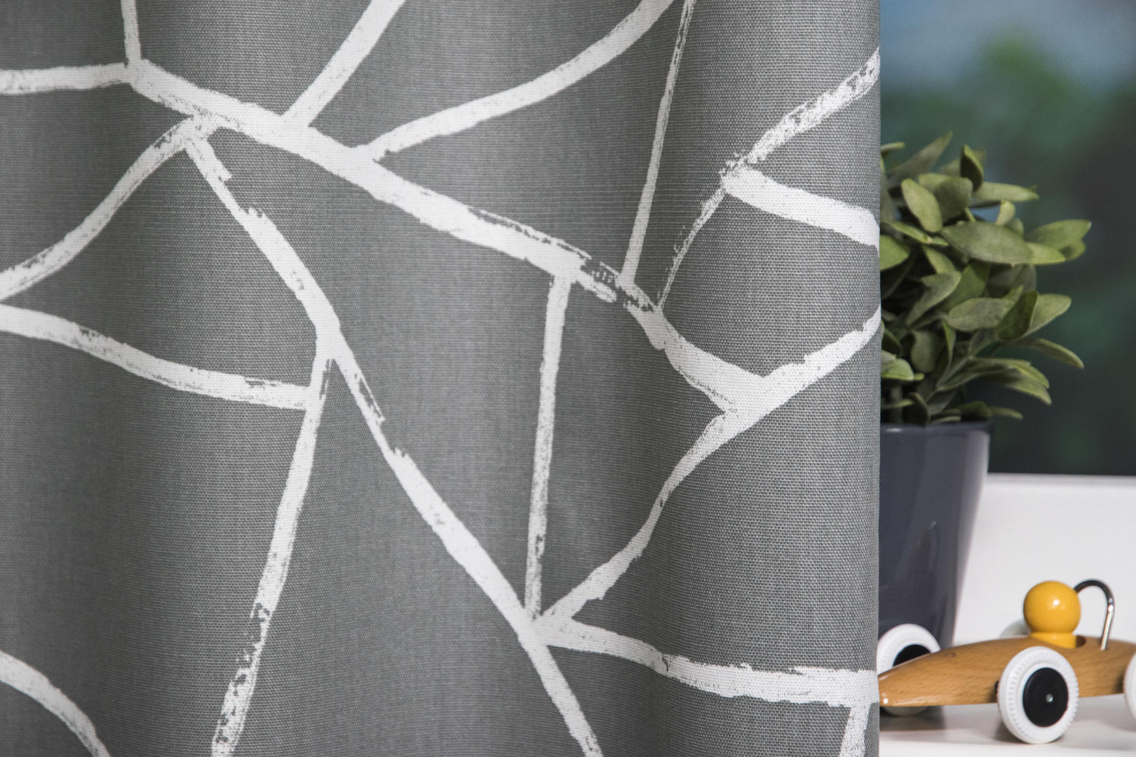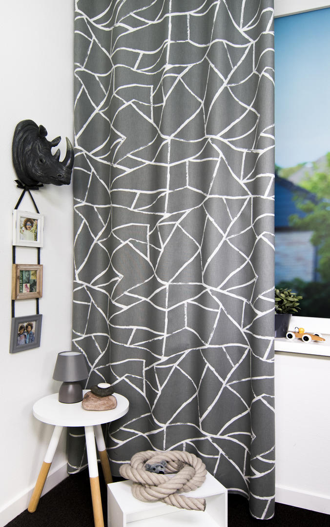 Een kwaliteitief hoogwaardige gordijnstof zonder je budget te overschrijden? dat kan met deze Smash gordijnstof! Op een antracietgrijze ondergrond lijken de lijnen met krijt strak en toch onregelmatig getekend te zijn, waardoor het gordijn een stoere uitstraling krijgt. De stevige stof valt prachtig, waardoor het patroon nog beter tot zijn recht komt.