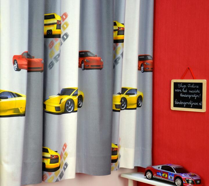 Met dit kindergordijnen staan de Lamborghini's en Ferrari’s voortaan naast het bed van uw zoon of dochter geparkeerd. Flitsend gordijn voor een stoere jongens- of meidenkamer. De naam van dit kindergordijn is ook Speed. Dus het is echt voor snelle kinderen. Het materiaal dat gebruikt is voor dit mooie kindergordijn is 100% katoen. Hierdoor valt het gordijn mooi soepel en voelt hij ook nog eens lekker zacht aan. Om het helemaal af te maken kun je ervoor kiezen om een verduisteringsstof erachter te laten maken. Hierdoor is de kamer in één keer donker.
