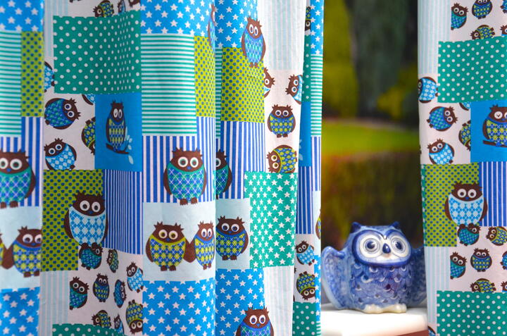 Wegdommelen terwijl de uilen een oogje in het zeil houden. Dit gordijn in verschillende kleuren is geschikt voor zowel de jongenskamer als de meisjeskamer.