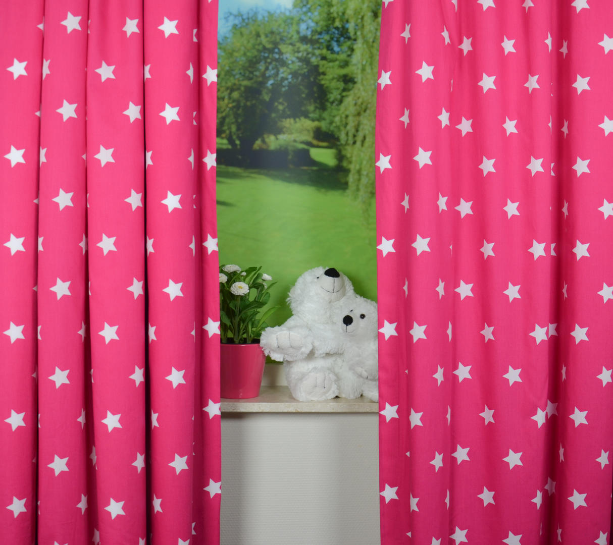 Prachtige tijdloze gordijnen met een effen kleur en bomvol fonkelde sterren. De gordijnstof is verkrijgbaar in 7 mooie diepe kleuren en past in elke kinderkamer. Zowel voor jongens als meisjes!
