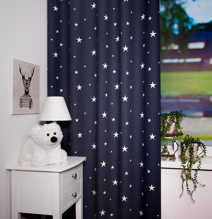 Maak de kinderkamer nog specialer met ons prachtige SuperNova kindergordijn. Deze nachtblauwe gordijnstof is gemaakt van dikke, hoogwaardige materialen en is voorzien van witte sterren in verschillende groottes. De sterren geven een magisch effect aan de kamer en creëren een sfeer van verwondering en avontuur.