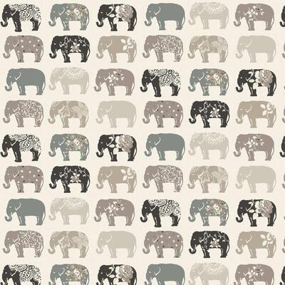 Het kindergordijn Sweet Gentle Giants is een speelse en tegelijk rustige keuze voor de kinderkamer. De stof is bedrukt met een herhalend patroon van olifanten, elk met een eigen karakter en decoratie. De olifanten zijn afgebeeld in een strak zijaanzicht en wisselen elkaar af in verschillende uitvoeringen: effen silhouetten, verfijnde bloemmotieven, stippen en sierlijke lijntekeningen. Dit zorgt voor een levendig geheel dat toch overzichtelijk en kalm oogt.