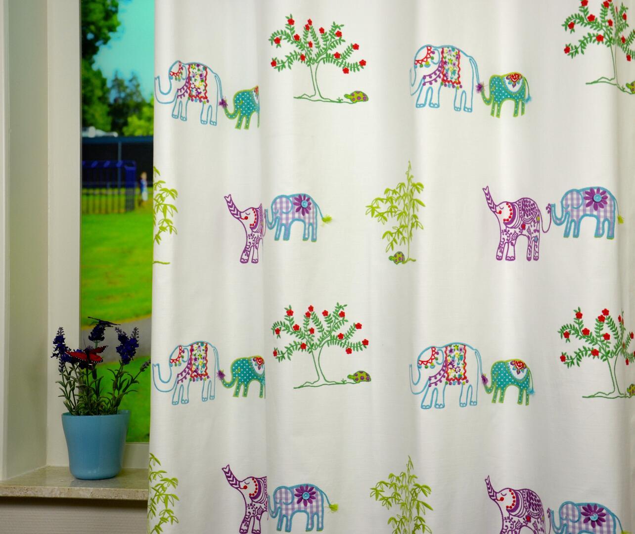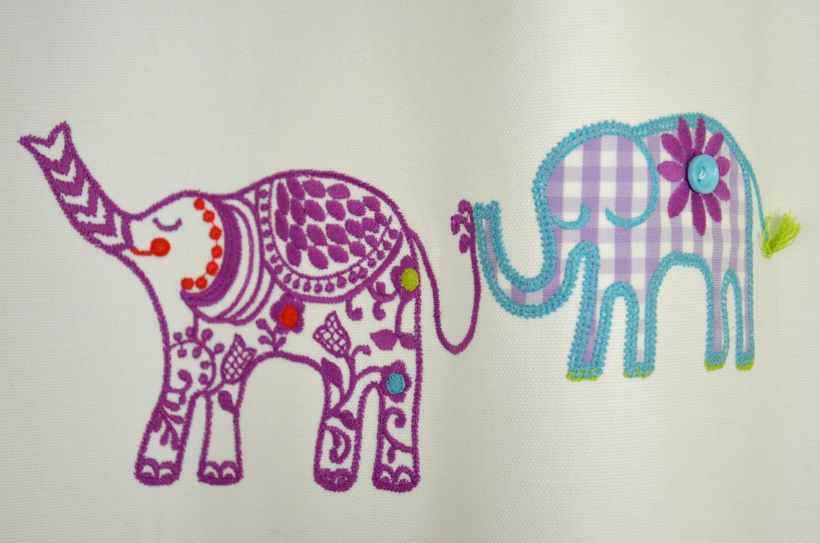 Tara – geborduurd patchwork gordijn met olifanten