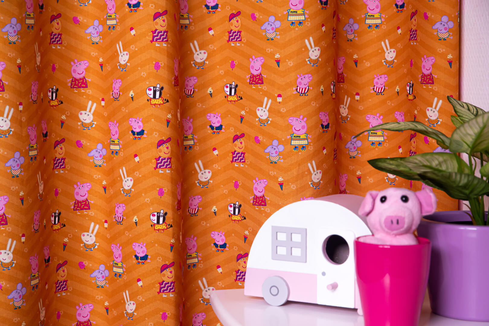 Een prachtig gordijn voor je raam! Als jij je eigen gordijnen kiest, wordt het helemaal jouw kamer. Deze gordijnstof met de naam Peppa Big is gemaakt van de beste materialen waardoor het gordijn mooi in de plooi valt. Het aantal te gebruiken banen gordijnstof van 140 cm breed wordt door ons vakkundig aan elkaar geconfectioneerd zodat het patroon van 32 cm mooi doorloopt. Laat voor een aangename isolatie en extra verduistering de gordijnen voeren: een verschil van dag en nacht!
