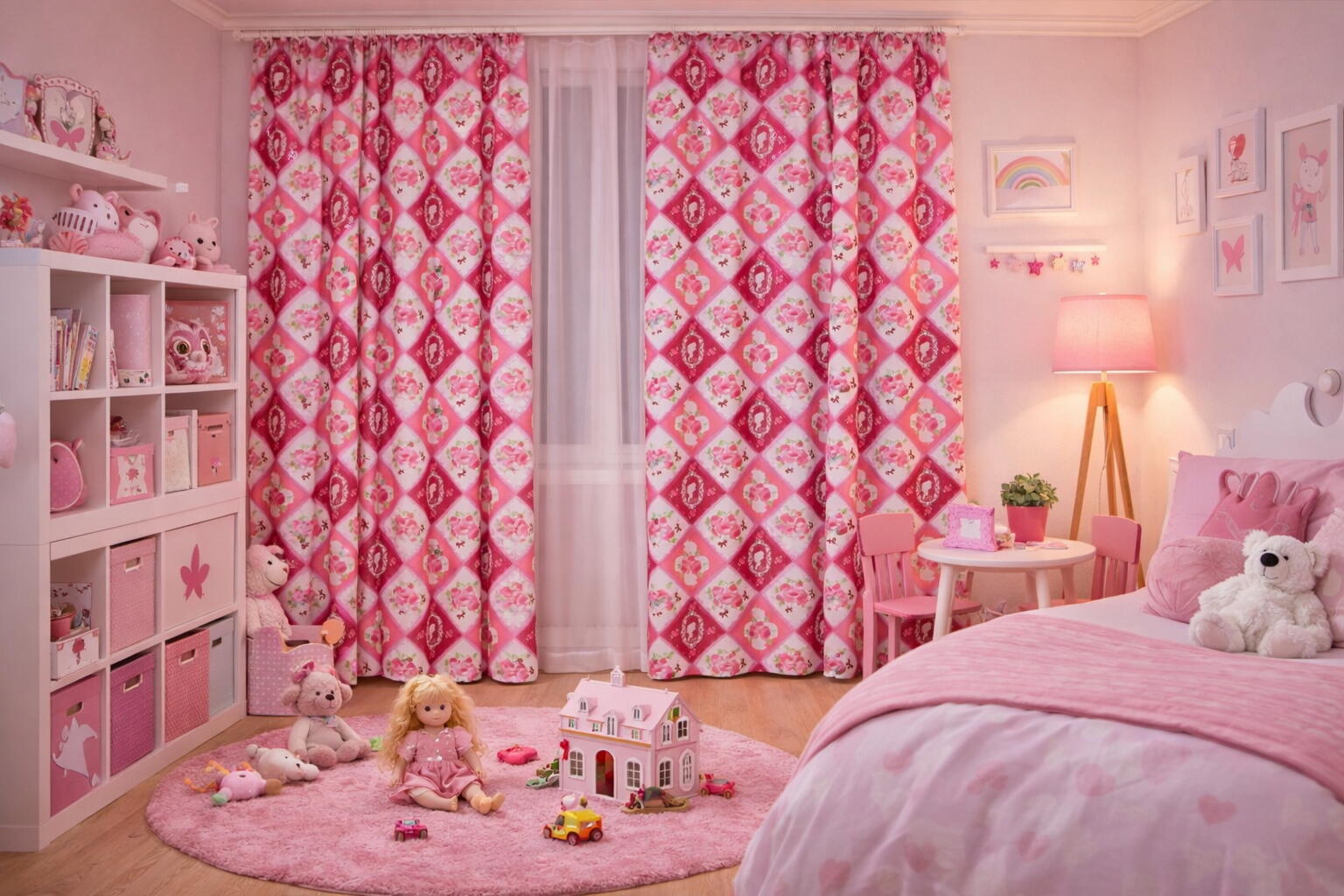 Roze Carreau – zacht, dromerig en romantisch. Ideaal voor een lieve meisjeskamer met een warme uitstraling.