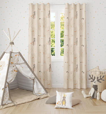 Kindergordijnen met dieren uit het bos: hertjes, eekhoorns, egels, de uil, de vos. Het bos in je slaapkamer, hier kom je tot rust. De dieren in het bos verstoppen zich graag. Maar op deze gordijnen laten de bosdieren zich zien. Elfjes zijn de vrienden van de bosdieren en zorgen voor een extra sprookjesachtige sfeer. Ook Bambi is van de partij. Heel aandoenlijk zijn ook de beren die kiekeboe spelen tussen de bomen ... fijne gordijnen voor de babykamer, net als de gordijnen met de lieve knuffelkonijnen.