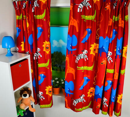 Op safari in je slaapkamer? Dankzij deze kindergordijnen kan dat veilig.  Wat doe je dus als de leeuw en de neushoorn je tegelijk aankijken? Je zegt: “Slaap lekker, tot morgen!” Ook jungle-gordijnen zijn er in vele varianten, van wild avontuurlijk tot lieflijk en speels. Gordijnen met giraffen, zebra’s en olifanten zijn geliefd. Zoekt u gordijnen voor de babykamer, kijk dan eens naar de schattige baby-olifantjes of andere ‘zachtaardige’ wilde dieren …