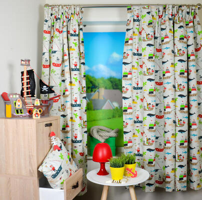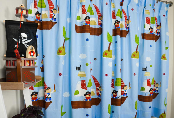 Kijk voor accenten die passen bij het thema Ridders en Piraten ook eens naar de mogelijkheden met meubels en accessoires voor de inrichting van de kinderkamer. Laat voor een aangename verduistering van de kamer de stof voeren: een verschil van dag en nacht.