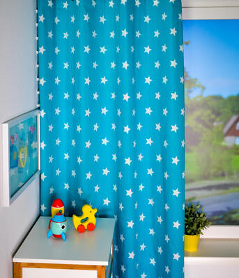 Kijk voor accenten die passen bij het gordijnen met sterren ook eens naar de mogelijkheden met meubels en accessoires voor de inrichting van de kinderkamer. Laat voor een aangename verduistering van de kamer de stof voeren: een verschil van dag en nacht.