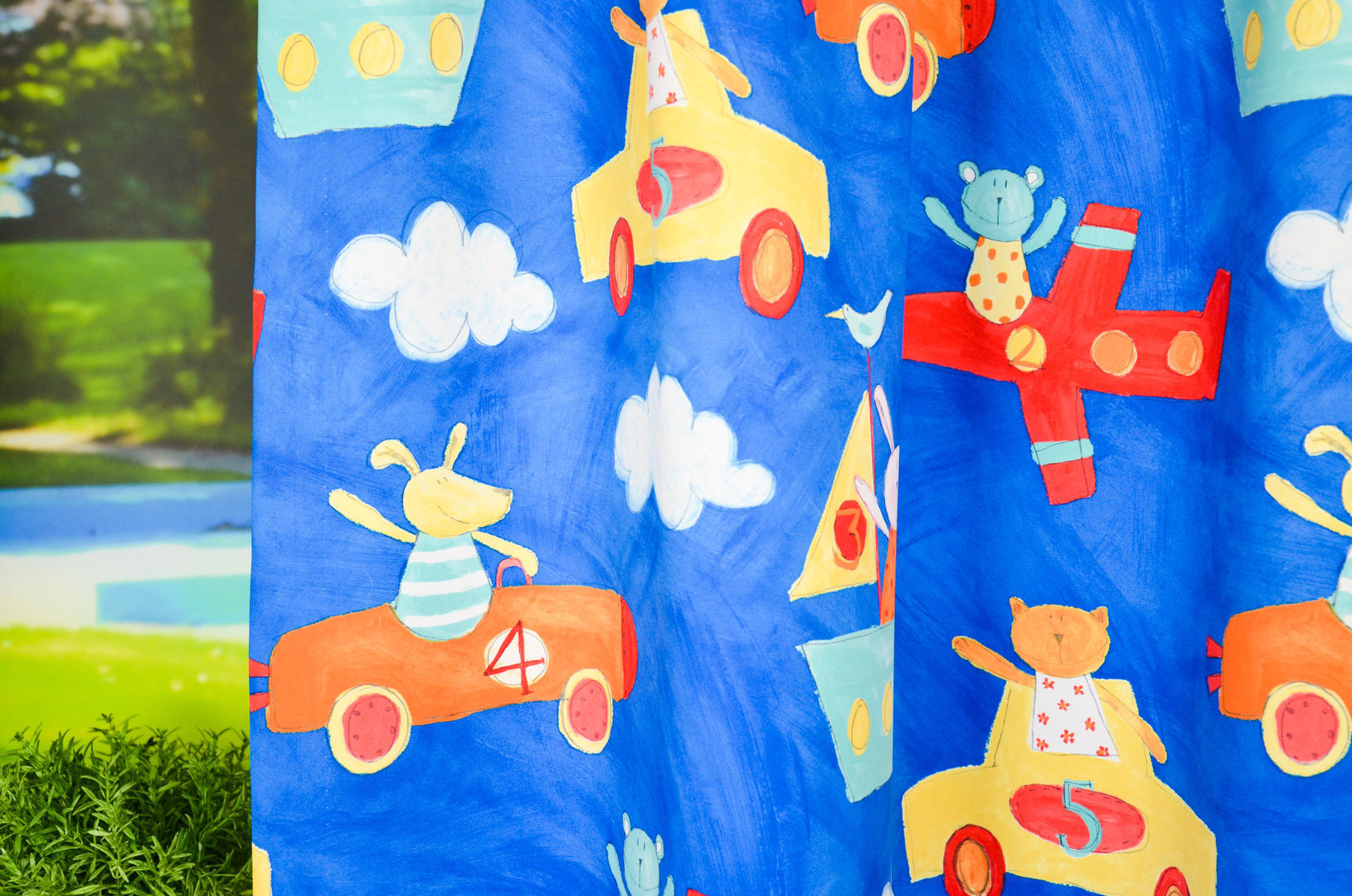 DIM OUT gordijnen voor de kleintjes! Dat betekent een vrolijke print op een stof die de kamer prettig donker maakt. Je hebt dus geen extra voeringkosten. De print is gedrukt op super zachte, soepelvallende stof en de achterzijde is off white. Leverbaar in 3 verschillende kleurstellingen. Het vliegtuig met kikker erin is 15 x 20 cm groot en vliegt jou zó naar dromenland! Kussentjes kun je mee bestellen om het thema helemaal compleet te maken.