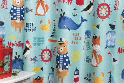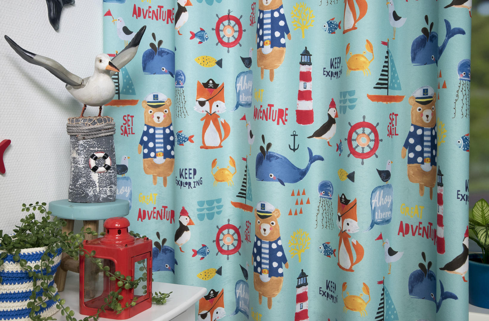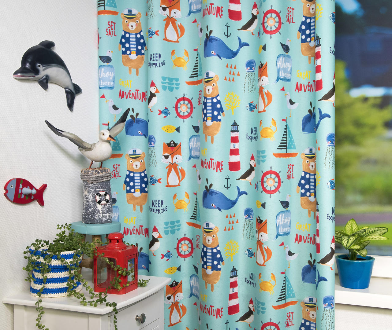 Dierengordijn dat voor de kleine vent lekker stoer is. Er is zoveel om naar te kijken en je fantasie de vrije loop te laten. Kapitein beer is 22 cm groot en hij komt piraat slimme vos regelmatig tegen. Beide willen jou graag naar dromenland begeleiden op hun zeewaardig jacht. Deze vuilwerende stof maakt je slaapkamer i.c.m. een verduisterende voering direct aangenaam donker, dat is voor een plezierige nachtrust extra fijn! De stof valt soepel en de achterzijde is egaal gebroken wit. Maak jij het zee- of strandthema met leuke accessoires compleet?