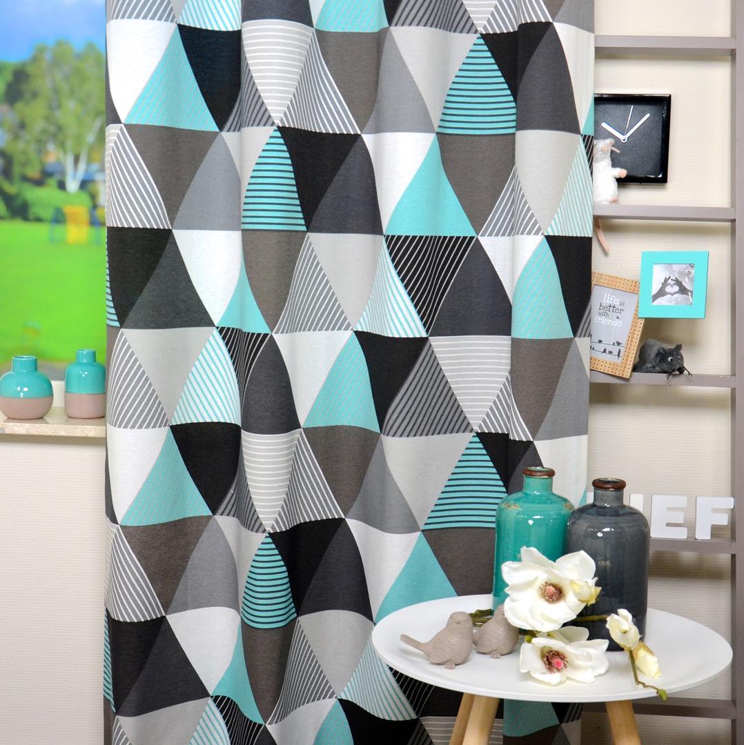 Deze gordijnstof met de naam Triangle mint is gemaakt van de beste materialen waardoor het gordijn mooi in de plooi valt.