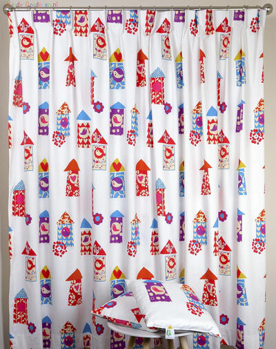 š Kindergordijn “Huisjes & Vogeltjes” – vrolijk, tijdloos en voor ieder kind