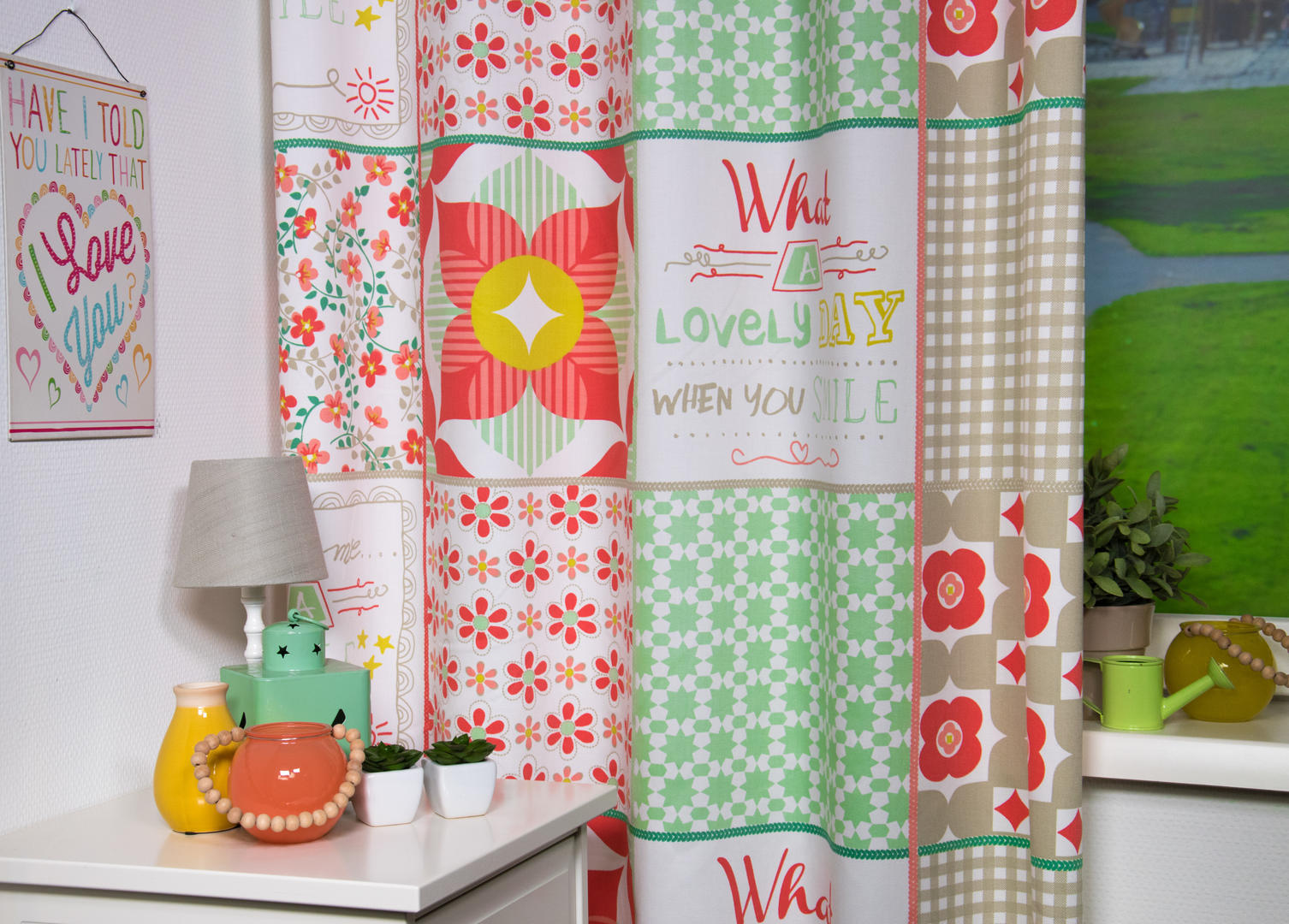 Laat de kamer van je dochter stralen met het meisjesgordijn "Smile"! Dit kleurrijke kindergordijn brengt vreugde in elke meisjeskamer. Gemaakt van een soepele mix van 50% polyester en 50% katoen, biedt het niet alleen een prachtige uitstraling, maar ook duurzaamheid en flexibiliteit. De grote vlakken bevatten een afwisseling van matte kleuren met bloemetjes, sterretjes, ruitjes en zelfs lieve teksten, waardoor dit gordijn een speelse en vrolijke uitstraling heeft. De hoogwaardige stof is lichtdoorlatend en kan worden gecombineerd met een voering voor verduistering, isolatie en geluidsreductie. Bestel eenvoudig knipstalen om zeker te zijn van je keuze. Klik op "bestel een knipstaal" en ontvang jouw samples vandaag nog. Heb je vragen? Ik sta klaar om te helpen.