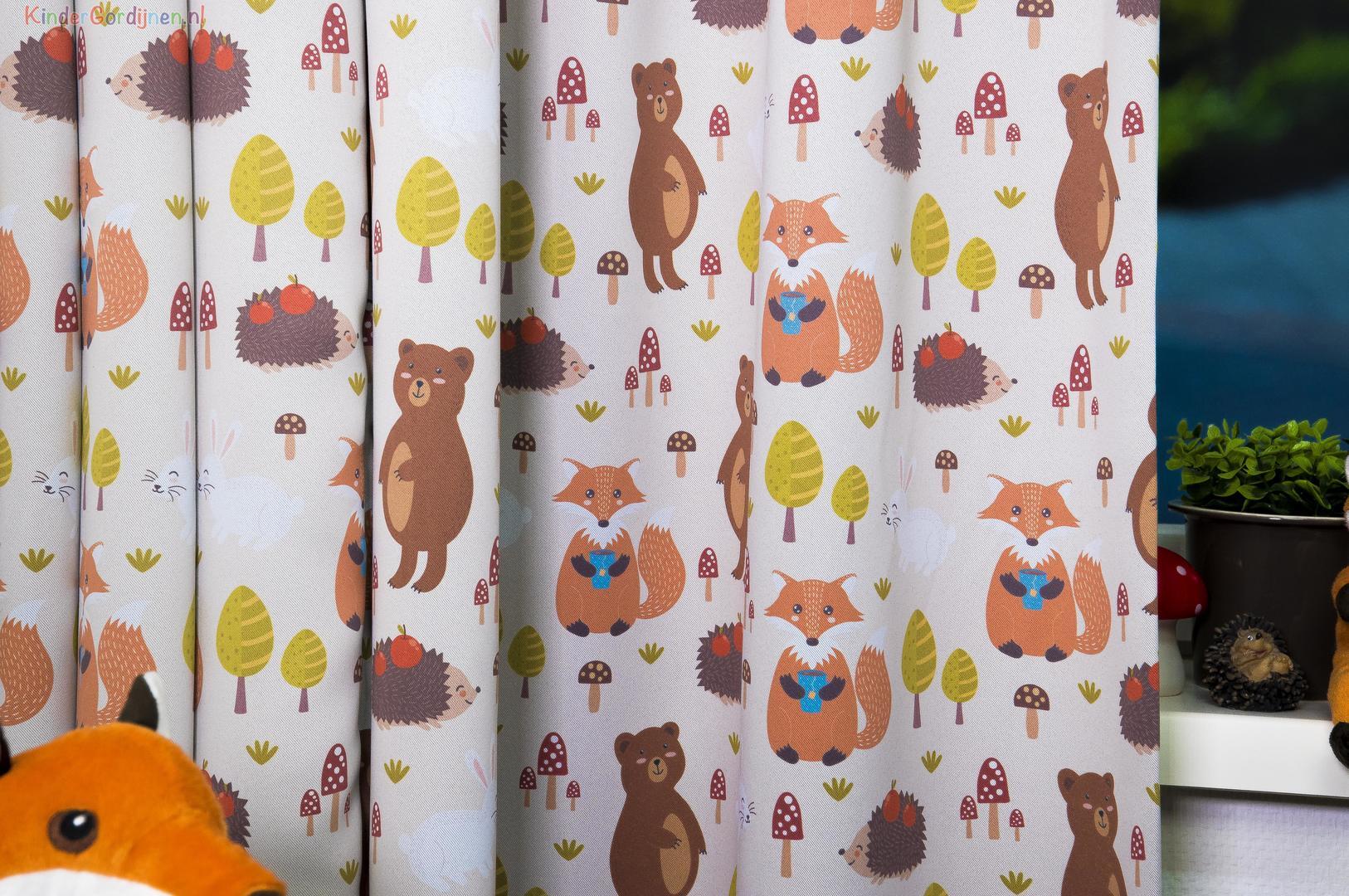 Nostalgisch gordijn én nog dim out ook! Dat betekent dat zonder extra voeren de kamer al aangenaam donker wordt. Ideaal om te zorgen dat je kindje iets langer in dromenland blijft. De ondergrond is een zachte zandkleur, de achterzijde een egaal gebroken wit. De lieflijke honingbeer is 12 cm groot en het witte sprookjeskonijn 6 cm. Houd je van warme sfeer uit vervlogen tijden, dan is dit jouw ideale gordijn!