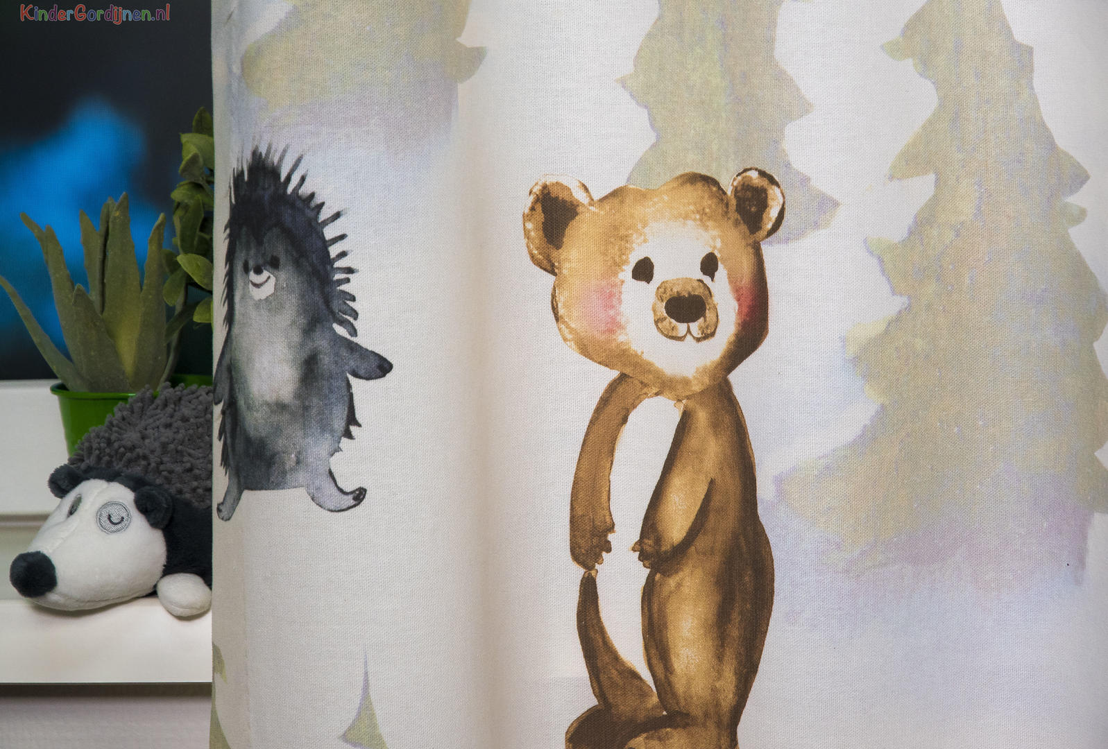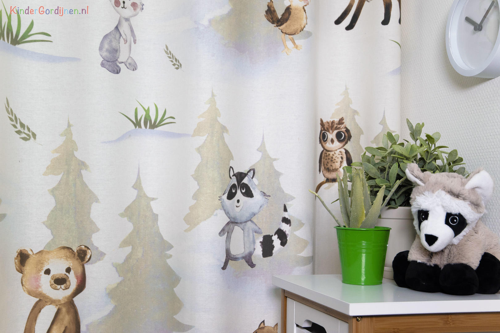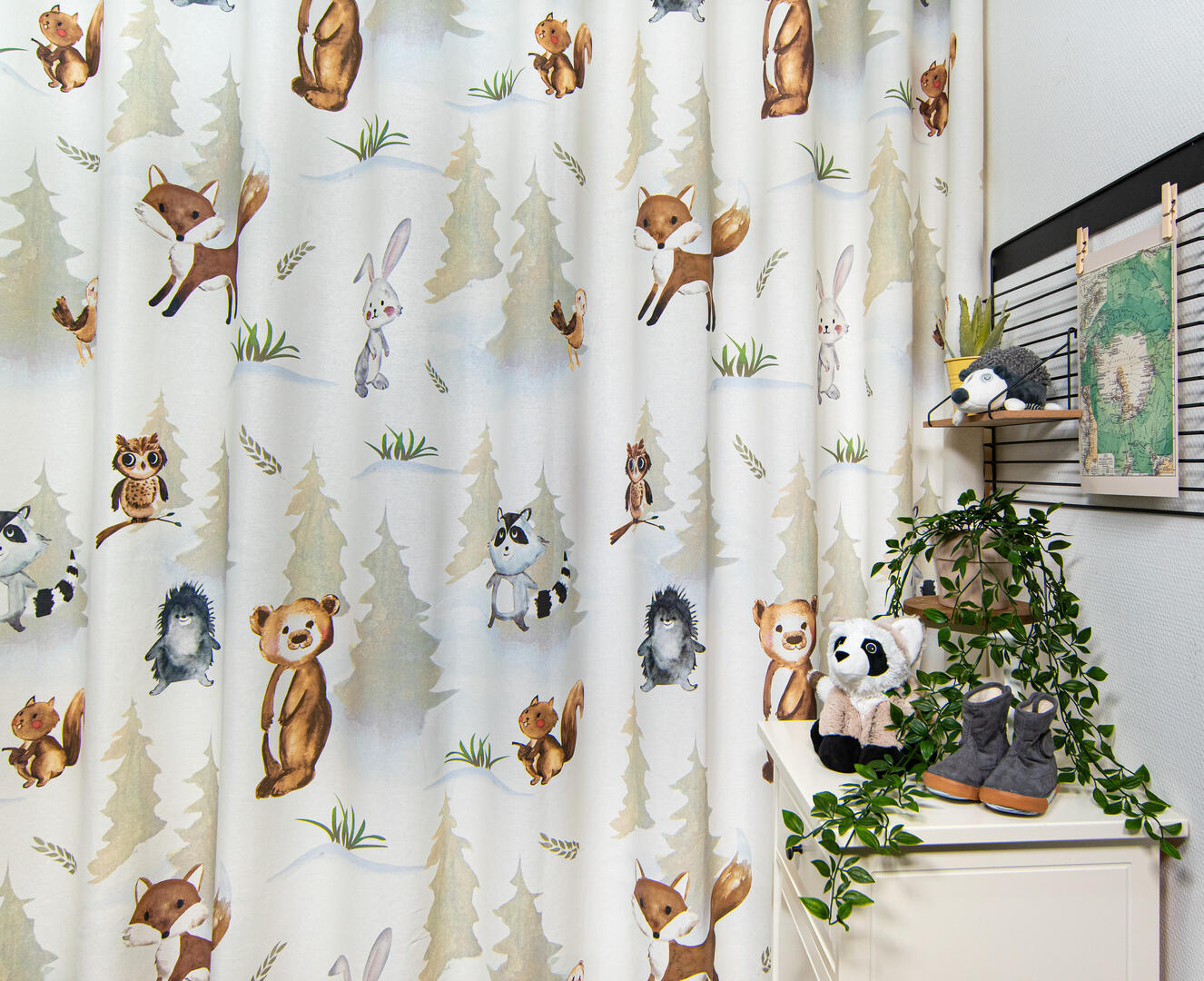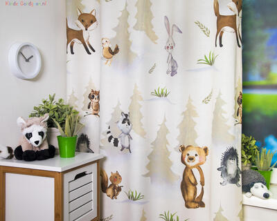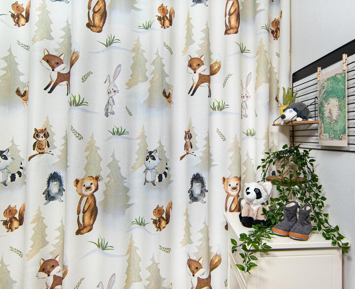Kindergordijn Woodfriends – een vrolijk bos vol speelse dieren