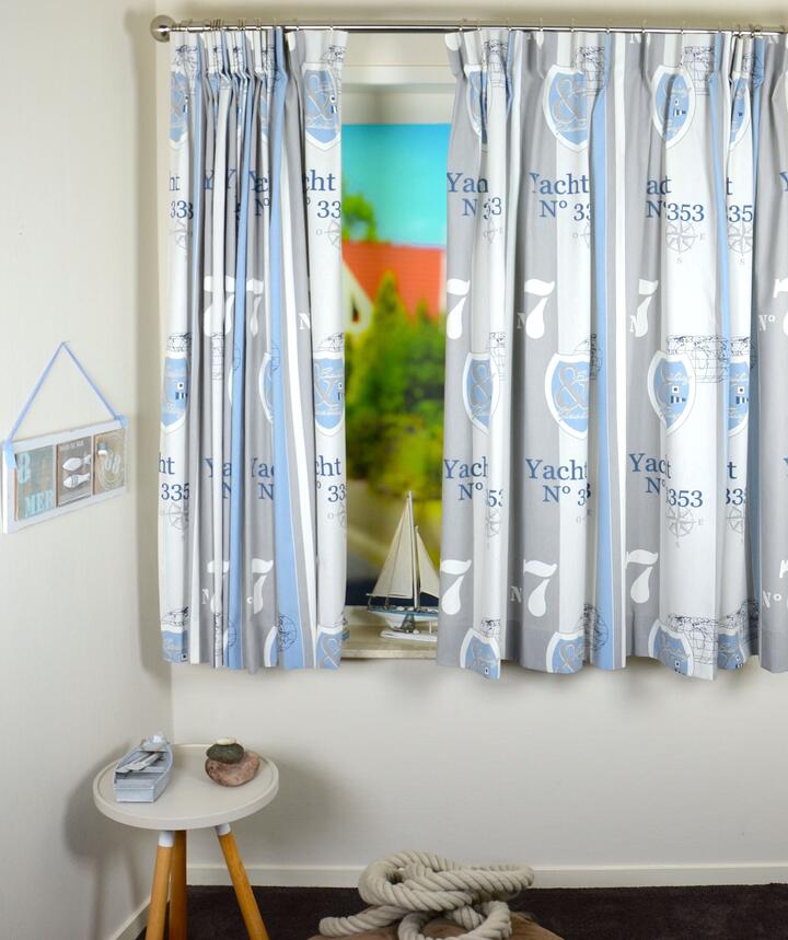 Verander de kinderkamer in een zeilschool met de Nacht kindergordijnen. Op zoek naar iets soortgelijks? Kijk dan eens bij deze gordijnstof. U kunt de katoenen gordijnstof los bestellen of gratis laten verwerken tot kant-en-klaar kindergordijn.